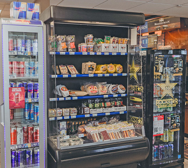 Quench your thirst with everything drinking water to a wide array of juices, energy drinks and name brand sodas like Pepsi, Coke, Dr Pepper, Mountain Dew, 7up and more….